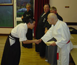 What is the Grading Syllabus? The full Tenshin Ryu syllabus can be viewed Here. There are 16 tachi (standing) forms and 13 seiza (kneeling) forms, 8 two man kata (Katana) and 8 two man kata (Wakazashi). What you need to be able to demonstrate for your grade is as follows: 6th Kyu - First two seiza waza and first two tachi waza from the syllabus. Care of the Katana, Dojo etiquette, Kamiza procedure. 5th Kyu - All the above plus, third and fourth forms tachi and seiza. 4th Kyu - All the above plus, fifth and sixth forms tachi and seiza. 3rd Kyu - All the above plus, seventh to tenth forms tachi and seiza. Two Kata (Katana) and (Wakazashi). 2nd Kyu - All the above plus, eleventh to thirteenth forms tachi and seiza. Two more Kata (Katana) and (Wakazashi). 1st Kyu - All the above plus, tachi forms thirteen to sixteen, two more Kata (Katana) and (Wakazashi). 1st Dan (Shodan) - Complete the whole syllabus to a high level of competence, explain your understanding of Kyushindo Philosophy, Teach a class for 30 minutes and submit and essay on the history of Iaido.